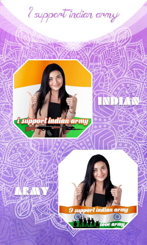 We made indian army photo suit editor application for those who have enthusiasm in Indian army dress photo suit and wish to become a good Indian army brave man or even indian police or soldiers. This army photo suit 2018 app contains indian army uniforms suit just like a Pak army suit uniform intended for male and females, therefore, everyone can set a mutual military dress suit on their photo solely. The indian army suit photo editor 2017 app enclose indian army suits for females to enhance their abilities and to encourage them for joining indian army.