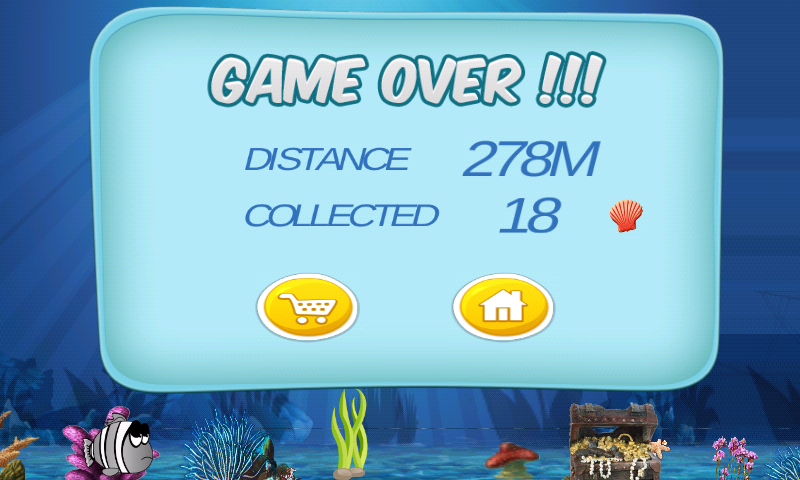 » Collect shells to buy power boosters, shield and life.
