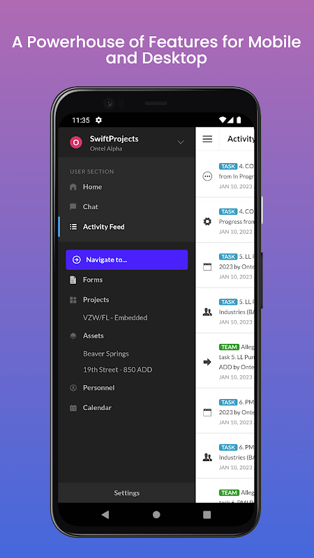 Swift Проекты позволяет компаниям разрабатывать и автоматизировать рабочие процессы, закрыть и QA жить и управлять миллионами взаимодействий между людьми, формы и файлы с любого устройства. Ли ваши команды находятся в поле или в офисе, с Swift, они остаются на связи и выполнять проекты быстрее.