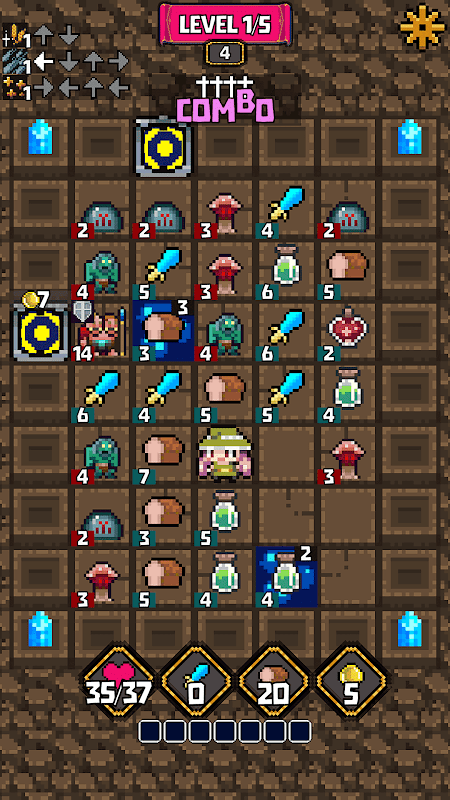Проведите своего персонажа через каждый уровень сетки 5x7!
