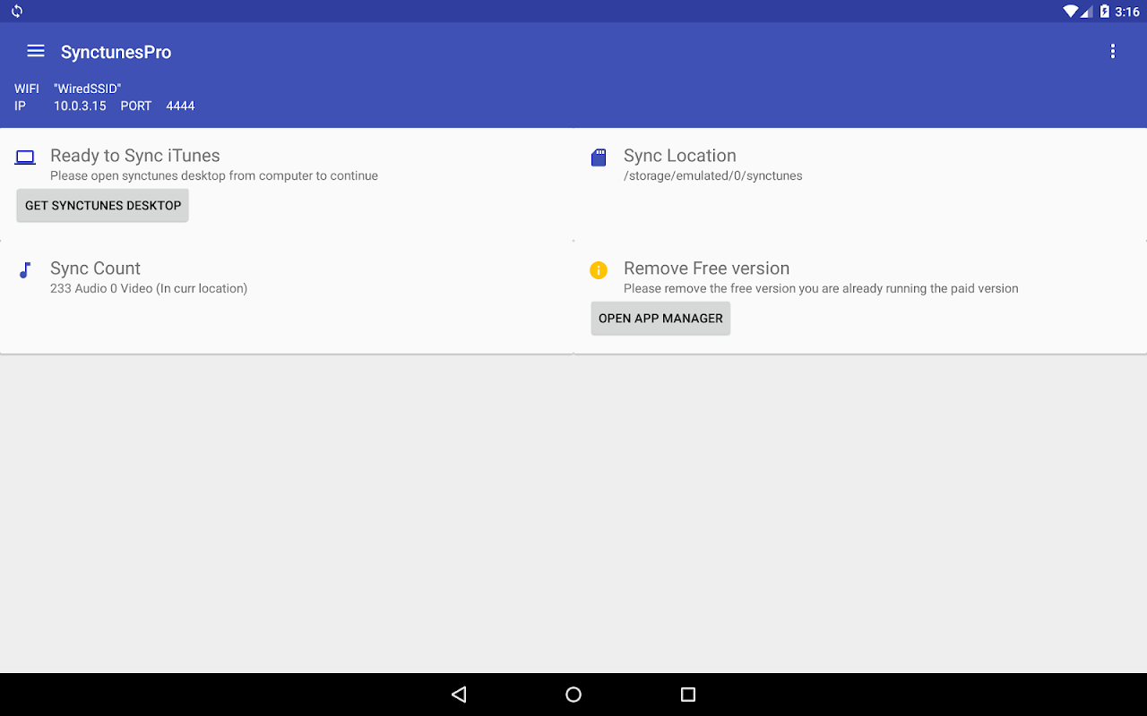 Synctunes беспроводной Pro является ITunes для андроид синхронизацию приложение, которое позволяет загружать ваши ITunes музыку, подкасты и видео из вашей библиотеки ITunes, чтобы на вашем андроид устройства через WiFi.