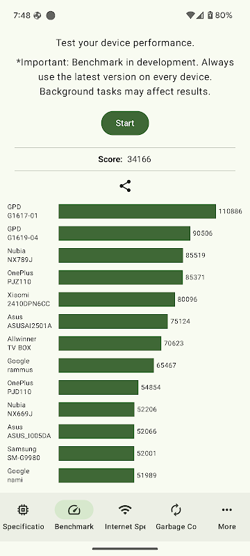 * Расширенный инструмент тестирования. Доступ к комплексному тесту производительности, который представляет графики производительности и сравнение с сотнями других устройств.