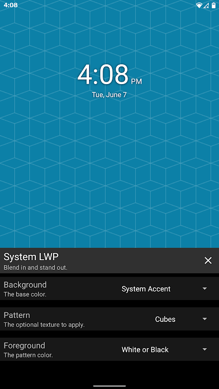 Настраиваемые обои с системными цветами и пользовательскими узорами.