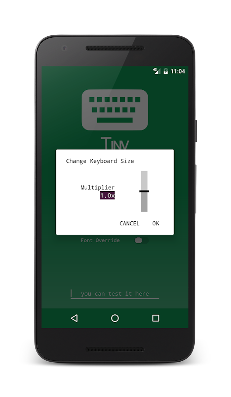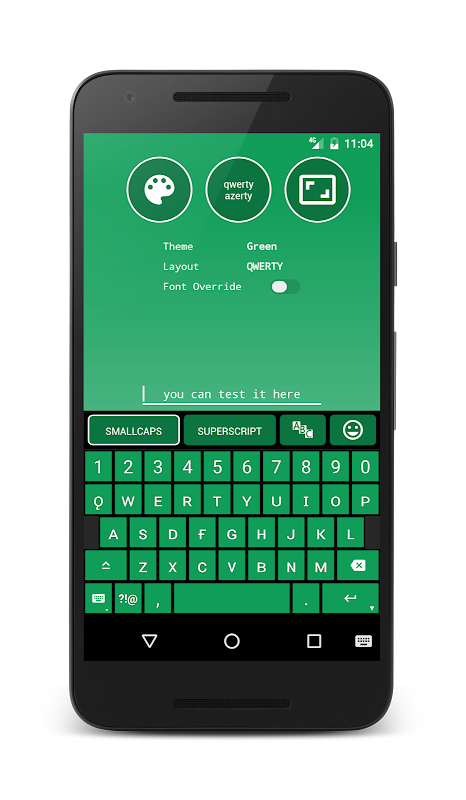 Вы можете выбрать один из 8 цветов или установить свой собственный размер клавиатуры. Tiny Text также поддерживает различные раскладки клавиатуры: QWERTY, AZERTY, QWERTZ, DVORAK и Colemak.