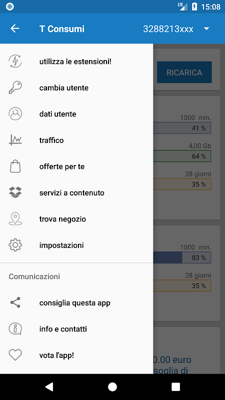 Questa app è la versione Android di Tim Consumi. Se desideri l'app Tim ufficiale, cercala sullo store con il nome MyTIM Mobile.
