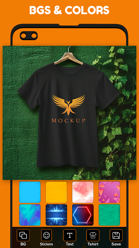 ✔ Добавляйте различные фоны из галереи, камеры, градиентных цветов и узоров на дизайн футболок.