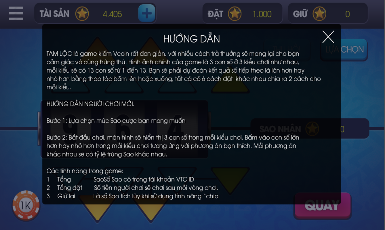 TAM LỘC là game đoán số kiếm Vcoin rất đơn giản, với nhiều cách trả thưởng sẽ mang lại cho bạn cảm giác vô cùng hứng thú.