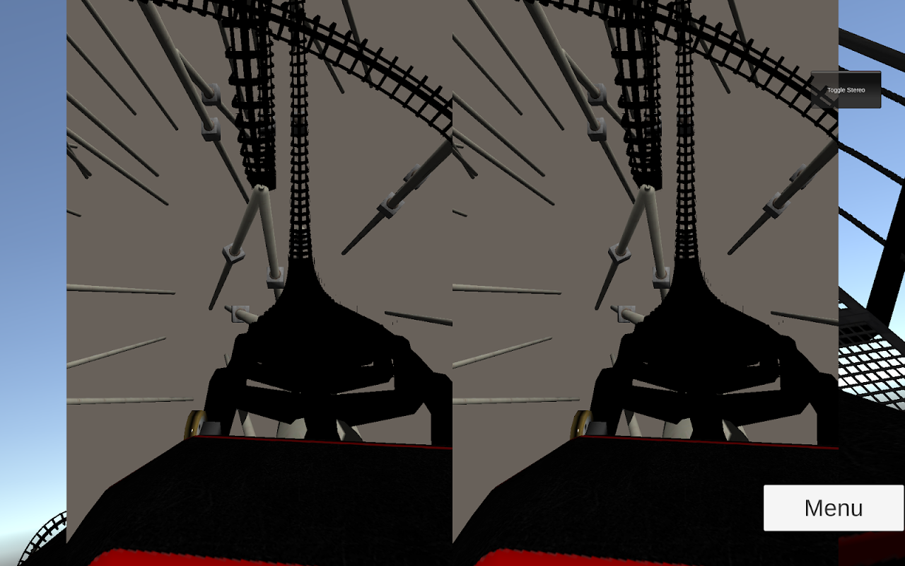 Ride a motion tracked virtual reality roller coaster in both virtual reality and normal motion tracked views.