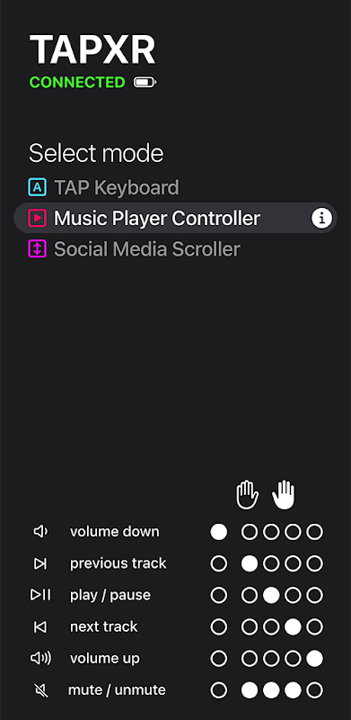 With TapModes you can quickly and easily turn your Tap into a multitool. Switch between Keyboard more, Media controller, and more ...