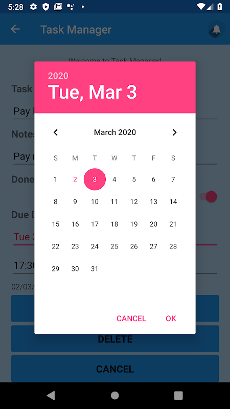 * Add a reminder for the task in your android calendar