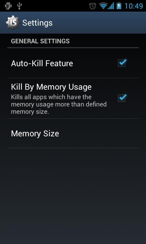 2) С "убить памяти" особенность, менеджер задач может убить все приложения, которые работают в фоновом режиме и имеют больше памяти, чем определенный размер памяти.