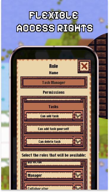 - Администраторы могут создавать собственные роли с определенными правами доступа для управления доступом в приложении