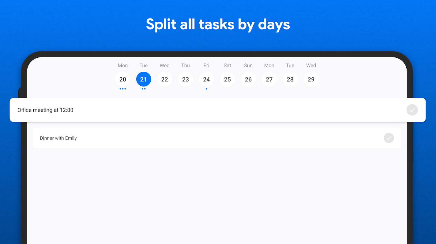Simple, clean, and easy-to-use schedule application to store and manage all your tasks in one single place.