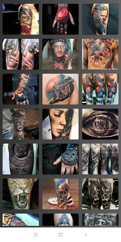 В нашем приложение собрано множество категорий в которых вы точно найдете подходящую для вас татуировку. Категории разбиты по расположению тату, по стилю исполнения и по цвету.