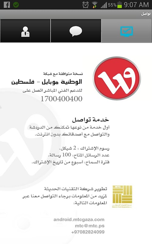 هذه النسخة من البرنامج متوافقة مع شبكة وطنية موبايل - فلسطين