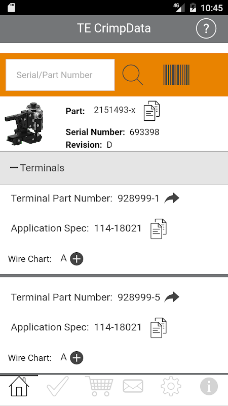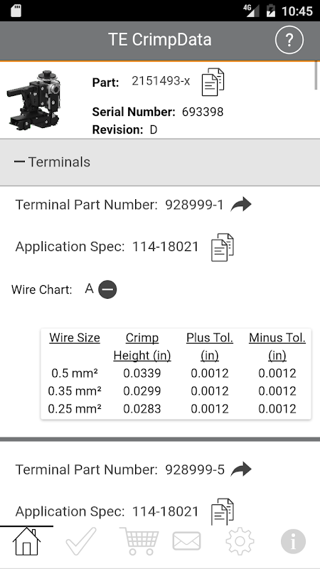 The ability to manage inventory and stay productive is now in the palm of your hand. The new TE CrimpData app allows customers to scan the 2D data matrix barcode now standard on all new OCEAN applicator ID tags and get quick access to a wealth of product information. And if you have an older TE applicator without a 2D barcode, the TE CrimpData app is designed to allow users to type in serial and part numbers into the tool to access the same valuable information.