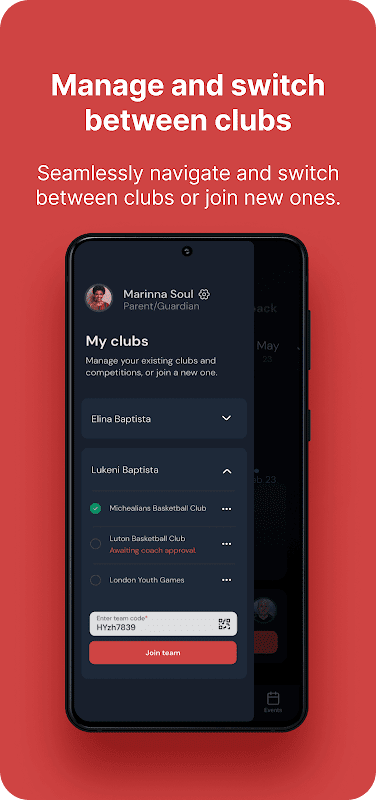 • Вступайте в несколько команд или клубов с помощью одной учётной записи