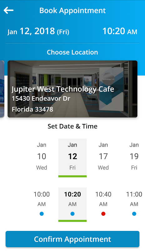 Технология кафе App, чтобы назначить встречу на месте NextEra энергии.