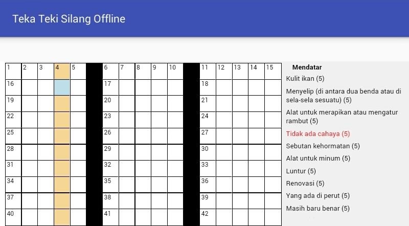 Permainan teka teki silang ini lebih menantang untuk menguji wawasan anda karena tanpa fitur bantuan