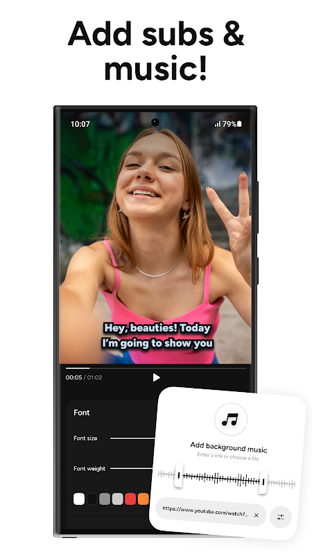 Превратите свой телефон в мини-студию: это приложение с автоподсказками сочетает в себе удобный диктант сценария, экранные субтитры для видео с речью и безупречный экспорт, чтобы ваш контент был готов к публикации на YouTube, Reels, Shorts или любой другой социальной сети.