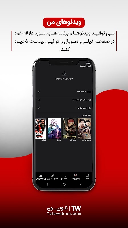 С Telewebion у вас есть доступ к прямой трансляции 60 телеканалов. Вы можете посмотреть их вживую или скачать и посмотреть позже.