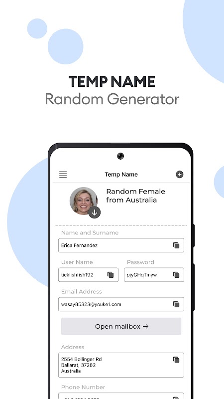 В дополнение к этому вы получаете реальный временный адрес электронной почты для каждого профиля случайного человека, и вы можете получать сообщения через него. А с временным именем вы получите классное имя, которое трудно забыть.