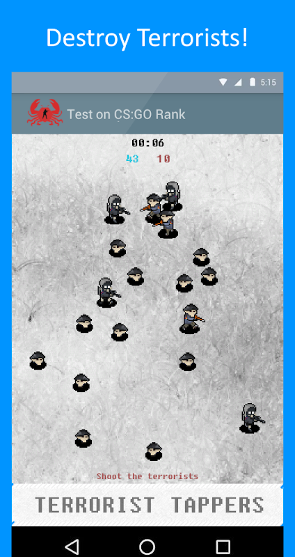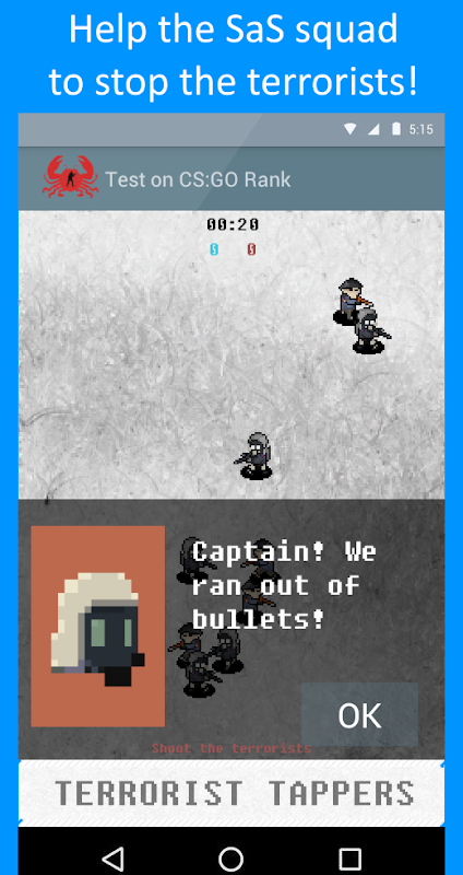 -Прохождение теста на точность через мини-игру "Terrorist Tappers" в приложении.