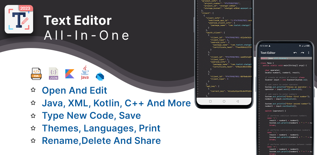 Текстовый редактор - TXT Maker — это универсальное приложение, разработанное для удовлетворения всех ваших потребностей в редактировании текста и кодировании. Благодаря поддержке таких языков, как Java, XML, HTML и других, это приложение предоставляет комплексную платформу для редактирования, создания и управления текстовыми файлами и файлами кода.