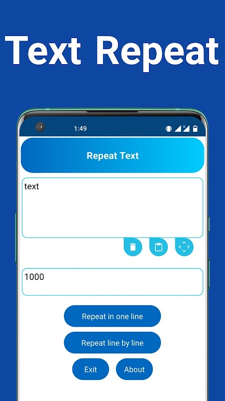 Возможность повторять текст 1000 и более раз и быстро, все с повторением слов приложения