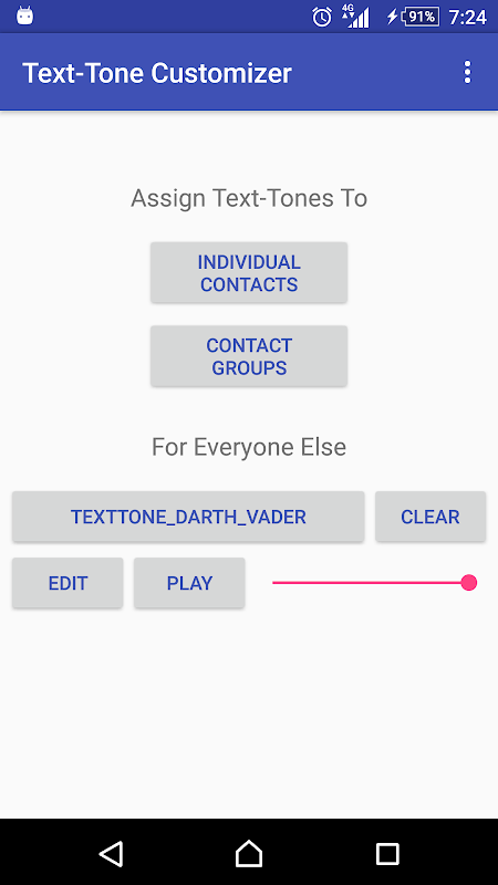 Set custom sounds (MP3/WAV/OGG/etc) for your contacts' incoming SMS and MMS messages so you know exactly who's texting you before you look at the screen.