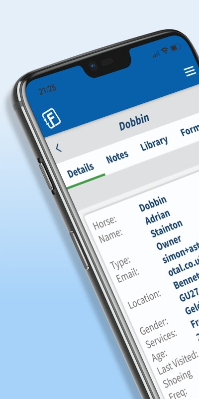 Лошадиные рекорды - список всех лошадей, которых вы посещаете. Каждая запись о лошади содержит подробную информацию о владельце, местонахождении лошади и частоте подковки. Это может быть адрес владельца, поле на дороге или двор / сарай. Помимо деталей лошади, вы можете хранить изображения, документы и ссылки на видео. Вы можете делать заметки о каждой лошади и видеть все их встречи и счета. Формы - это новая функция. Создайте свою собственную форму в нашем конструкторе веб-форм и заполните ее в своем приложении.