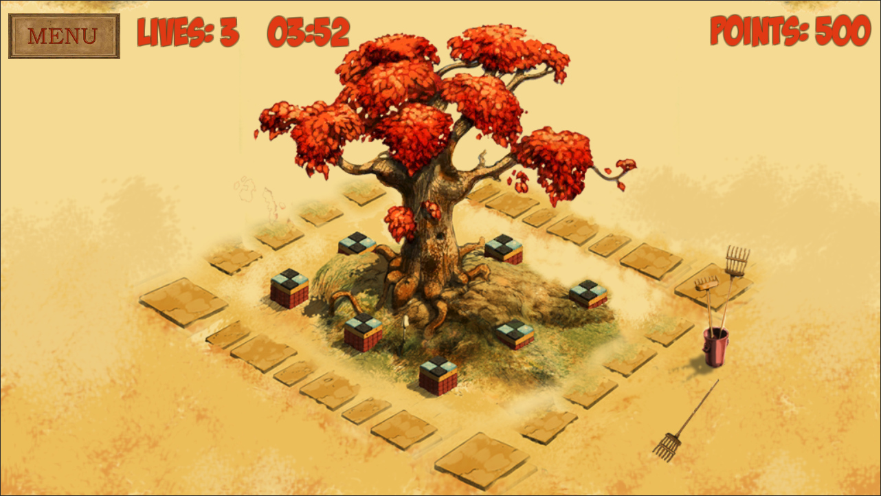 The player has to tend to the paths around the tree.