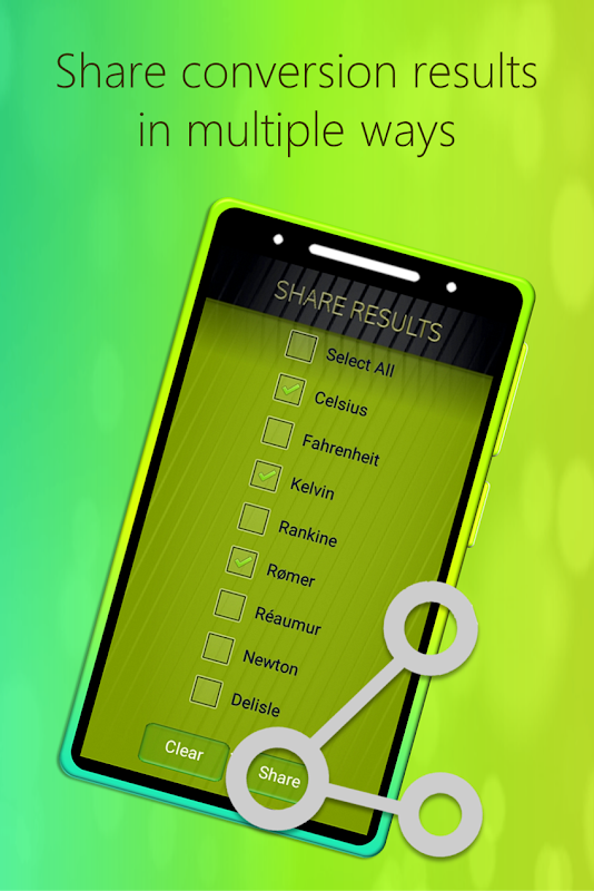 • Один щелчок и опция копирования для введенных и преобразованных единиц температуры. Пользователь может выбрать все или только необходимые единицы.