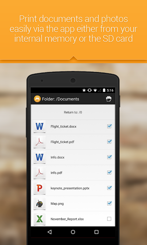 • Convenient file picker enables printing files from SD and internal storage