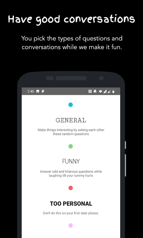 Если вы на первом свидании или просто отдыхаете с группой друзей, мы хотим быть другом (приложение), чтобы сделать ваши беседы интересными. Забудьте дни, когда вы должны думать о вопросах, которые нужно задать, потому что мы вместе с отраслевыми экспертами и такими же людьми, как вы, составили список потрясающих, пульсирующих и слезоточивых разговоров, чтобы развлечь всех.