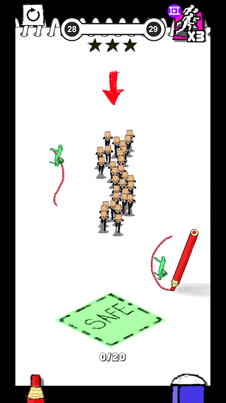 Нарисуй свой путь карандашом, чтобы избежать препятствий и зомби.