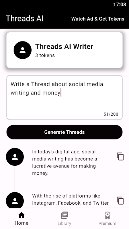 Раскройте свой творческий потенциал и выделитесь в социальных сетях с помощью ThreadsAI! Это новаторское приложение использует возможности искусственного интеллекта, чтобы помочь вам генерировать идеи контента и без труда писать сообщения.