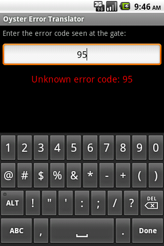 Вы не просто ненавижу, когда вы направляетесь через барьеры билетов на метро и это не позволяет вам? Узнайте, что эти запутанные числовые коды значит у ворот билетов в TfL станций (в лондонском метро / трубка) или национальных железнодорожных. Это приложение может перевести как Oyster коды ошибок карт и ошибки бумажный билет.