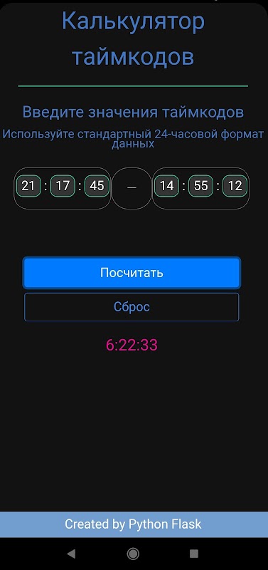 Приложение для арифметических операций (+ -) с временными данными в 24-х часовом формате