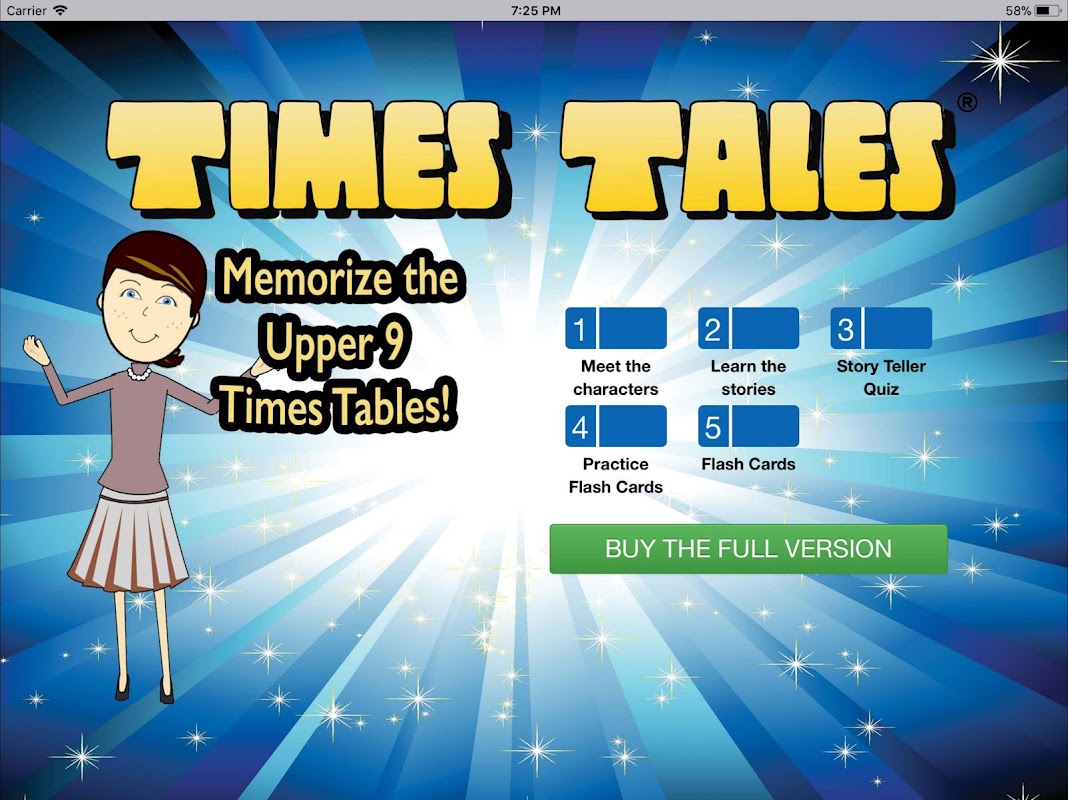 Learn the upper times tables in one hour with the powerful memory trick of mnemonics. Times Tales is fast, fun and most of all it works! Times Tables are fast, fun, and effective!
