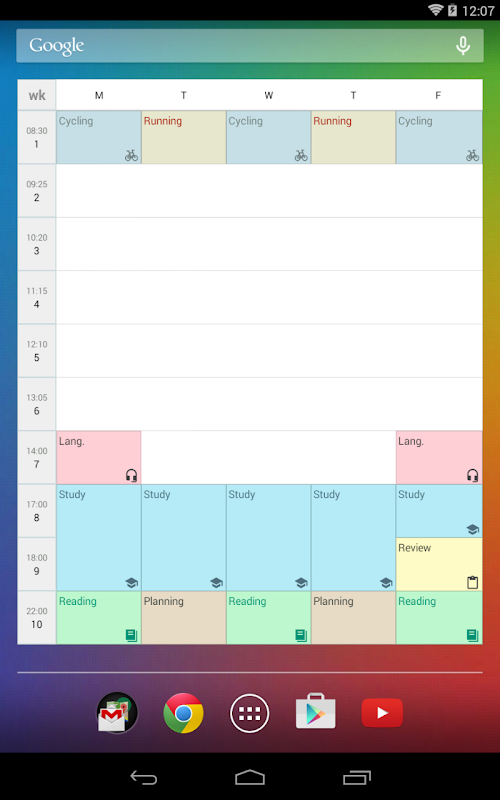 Это рабочий график, или график класс виджета приложение. Вы можете определить свой собственный график вашей работы или класса, и положил его на домашнем экране.