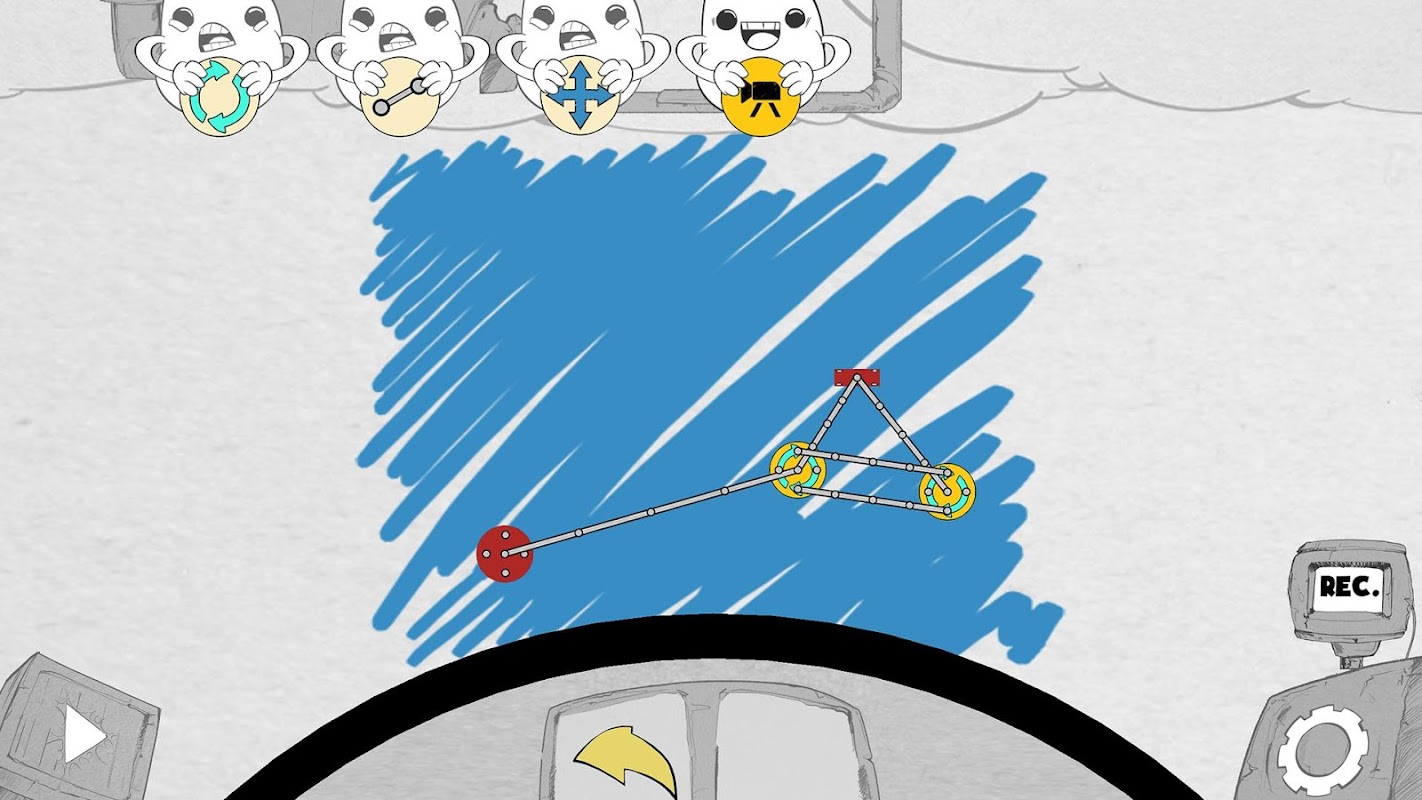 In the build area, you can build your Tiny Contraption with wheels and rods.