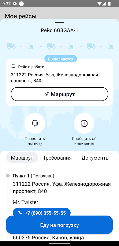 Приложение использует данные о Вашем местоположении, поэтому Вам не потребуется постоянно отчитываться перед диспетчером. А грузоотправитель, грузовладелец и грузополучатель будут спокойны, отслеживая в реальном времени ваше местоположение на рейсе и ориентировочное время прибытия.