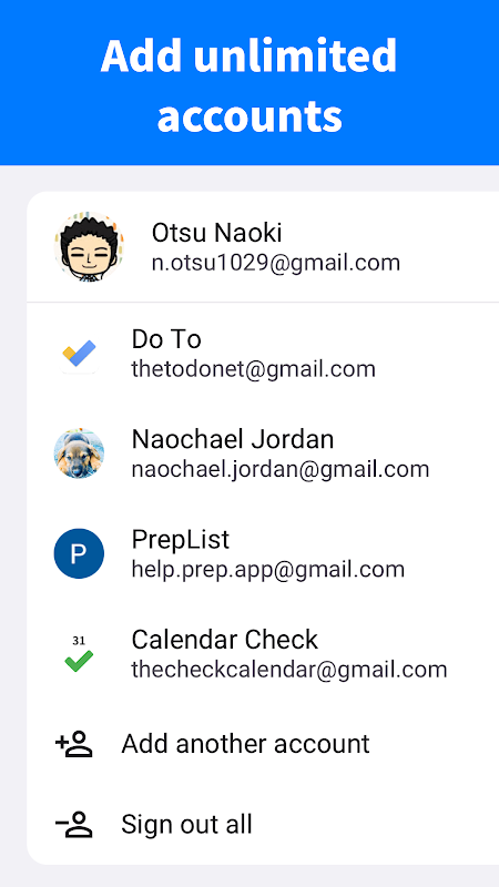 Добавляйте неограниченное количество аккаунтов для работы, личных дел и т.д. Мгновенное переключение одним касанием!