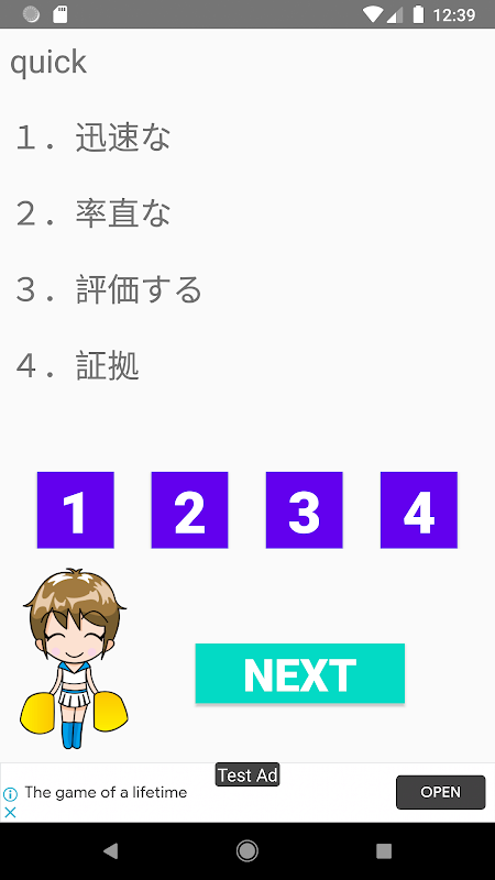 女の子が問題を出します。回答ボタンで答え合わせ。定期的に覚えてないと、女の子が元気なくなっちゃいます。