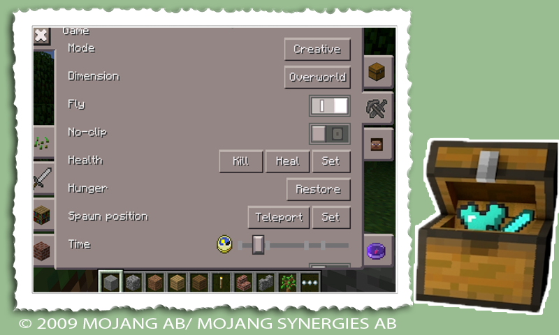 Ящик для инструментов или игровой режим в Minecraft Bedrock. Это мобильное приложение обеспечивает легкий доступ ко всем типам блоков в Майнкрафт. Изменение настроек, установка времени суток, режима выживания и погоды в MCPE. И другие вспомогательные вещи: рентген, treecapitator и т. Д.