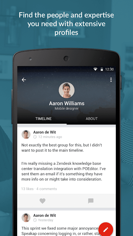 Быстро и легко делитесь новыми знаниями, идеями и внутренними достижениями с остальной частью вашей команды, отдела или организации. Дополняйте сообщения картинками, видео и смайликами. Просто следите за новыми сообщениями от ваших коллег, организации и партнеров.