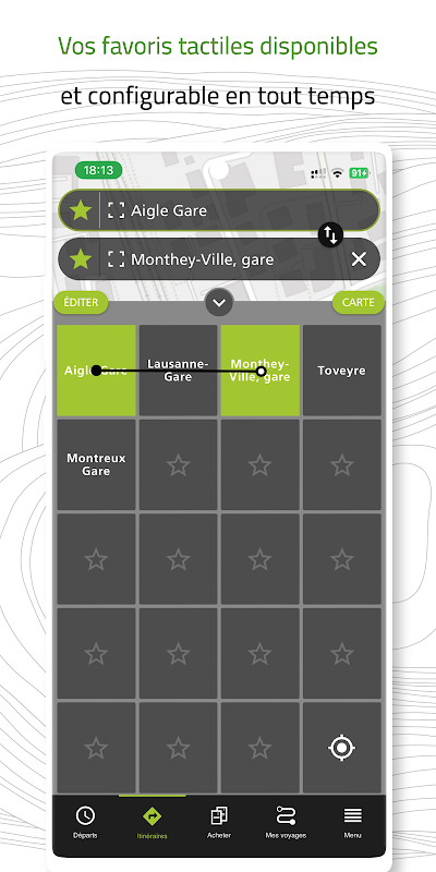 TPC Mobile позволяет планировать поездки и покупать билеты на транспорт по всей сети TPC, Mobilis, CFF, Car Postal, TMR и RegionAlps.