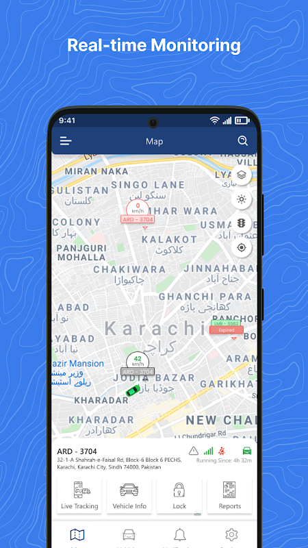 Отслеживайте свой автопарк в режиме реального времени: отслеживайте местоположение, скорость и направление транспортных средств с помощью нашего интерактивного интерфейса карты.