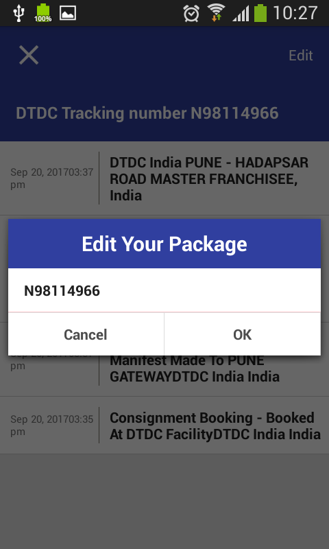 - Tap "Track" button to getting data from DTDC Tracking Services When the result has return you can view you status's shipments, if your request is legal, your Tracking Tool For DTDC ID will be saved to use in next time